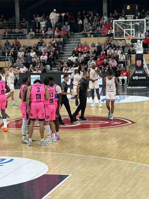 Le match devient un véritable bras de fer. Le jeu est physique, personne ne lâche, l’écart ne dépasse jamais les quatre ou cinq points. Dans les 5 dernière minutes Leray se jette pour récupérer le ballon et retombe durement, percuté par Difuidi sur le parquet. Il doit quitter le terrain pour protocole commotion…