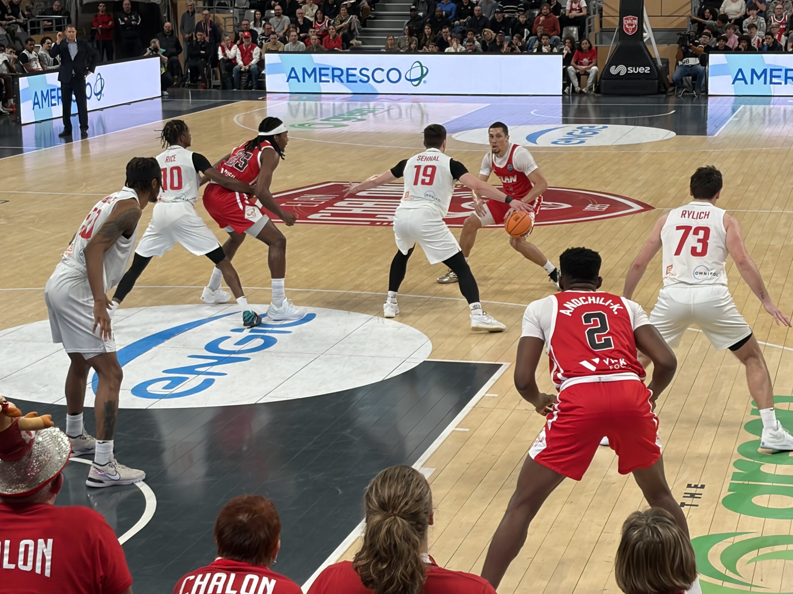 Le premier quart-temps donne le ton avec un 36–18 sans appel. Chalon court, défend, partage le ballon et sanctionne la moindre erreur adverse. Nymburk est pris à la gorge, incapable de poser son jeu ou de trouver des solutions face à l’activité chalonnaise. L’écart ne cesse de grandir et atteint 60–34 à la pause, reflet fidèle de la domination observée sur le parquet.