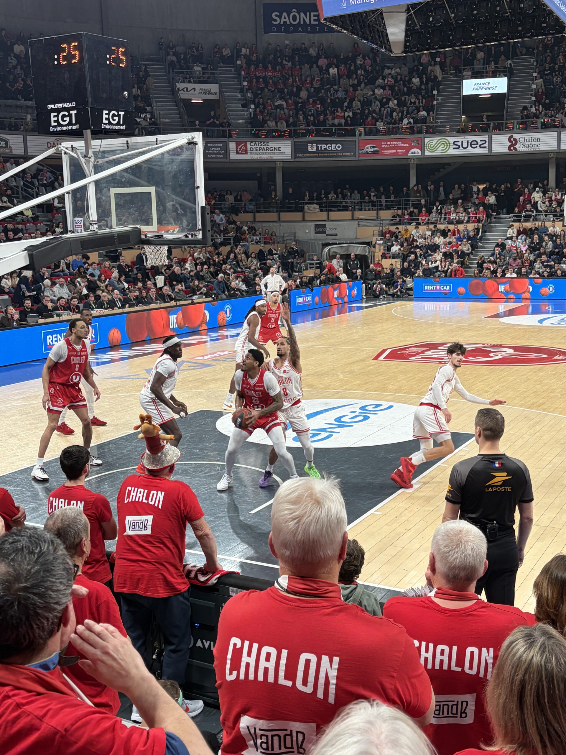 La fin de match sera plus tendue que prévu. Jusqu’alors catastrophique à trois points (1/15), Cholet trouve soudainement de l’adresse grâce au vétéran TJ Campbell. Le meneur sort de sa boîte et enchaîne trois tirs primés dans le money time, faisant fondre l’écart jusqu’à +9 à une minute du terme. L’Élan gère les dernières possessions, sécurise la victoire et s’impose finalement 87-77, le Colisée est en fête, « qui ne saute pas n’est pas chalonnais ! ».