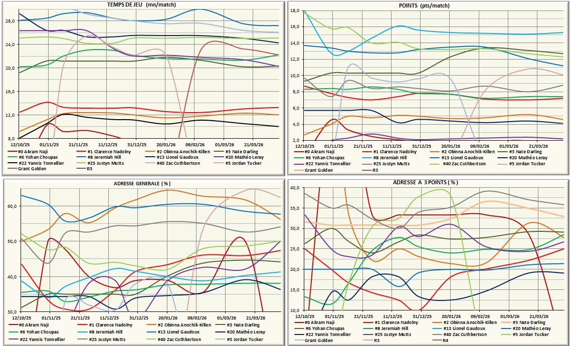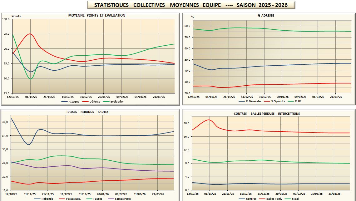 GRAPHIQUES STATISTIQUES COLLECTIVES ÉQUIPE ET GRAPHIQUES INDIVIDUELLES JOUEUR PAR JOUEUR